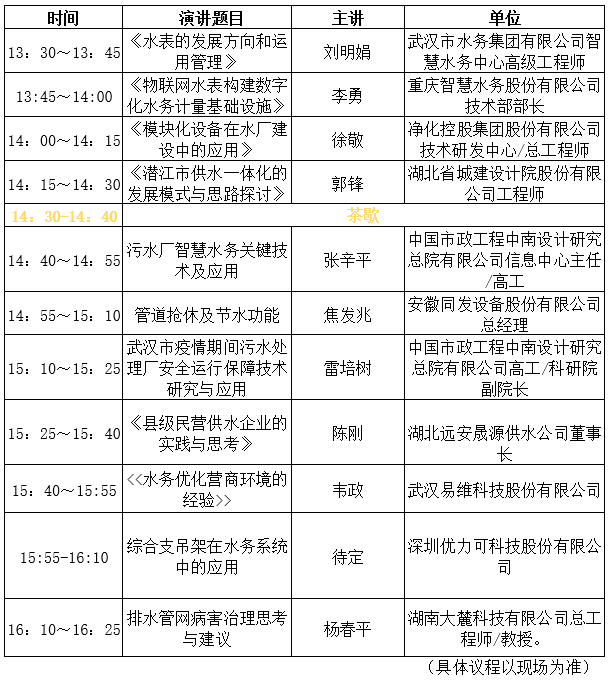 2020華中六省城鎮(zhèn)供水排水技術(shù)研討會(huì)(2)日程安排
